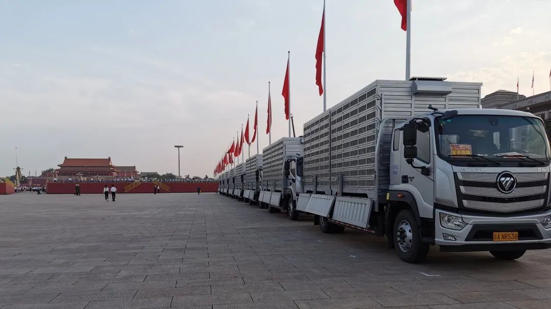 9時30分,慶祝大會接近尾聲。天安門廣場東西兩側,在和平鴿指揮員的旗語下,16輛福田歐航中卡和平鴿放飛車同時開欄。那一刻,10萬羽信鴿振翅高飛,在人民英雄紀念碑上方集結、盤旋,蔚為壯觀。