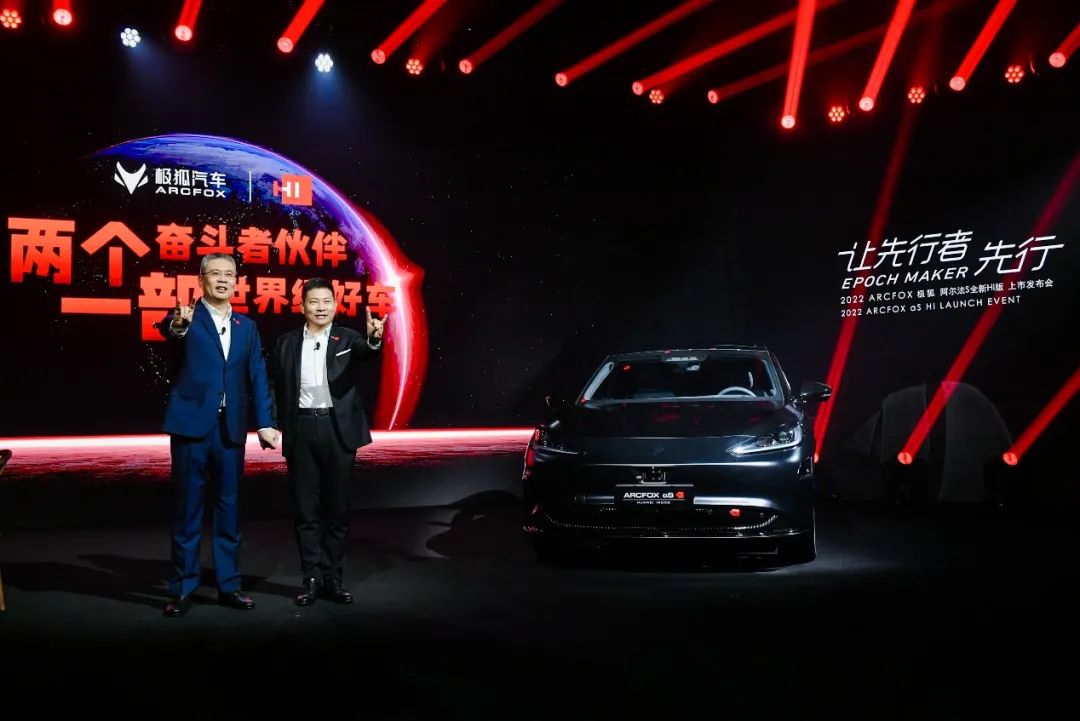 就在剛剛,ARCFOX極狐阿爾法S全新HI版車型正式上市,北汽集團副總經(jīng)理、北汽新能源董事長劉宇,華為常務董事、終端BG CEO、智能汽車解決方案BU CEO余承東同臺握手,共同見證這款“智能駕駛第一車”的隆重登場。